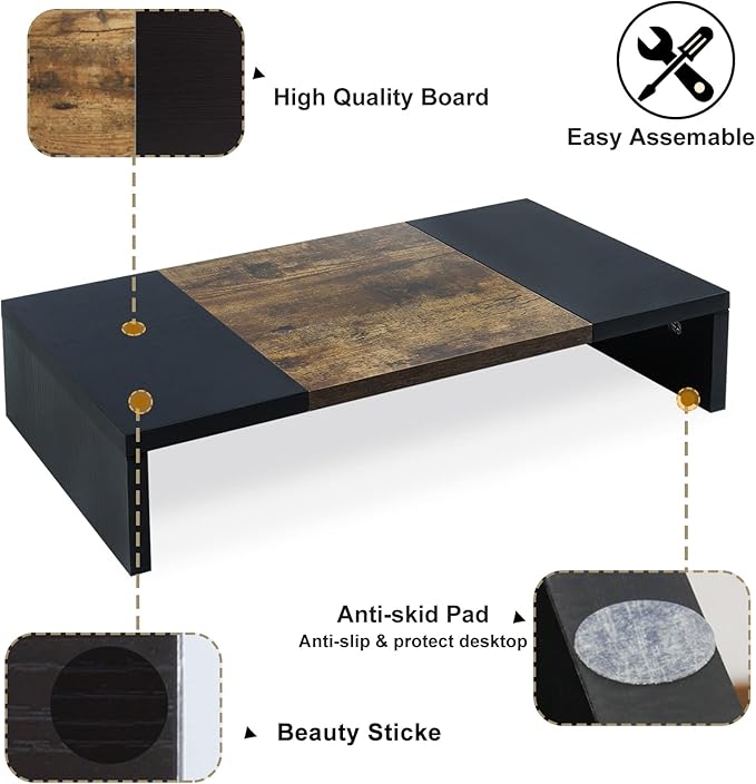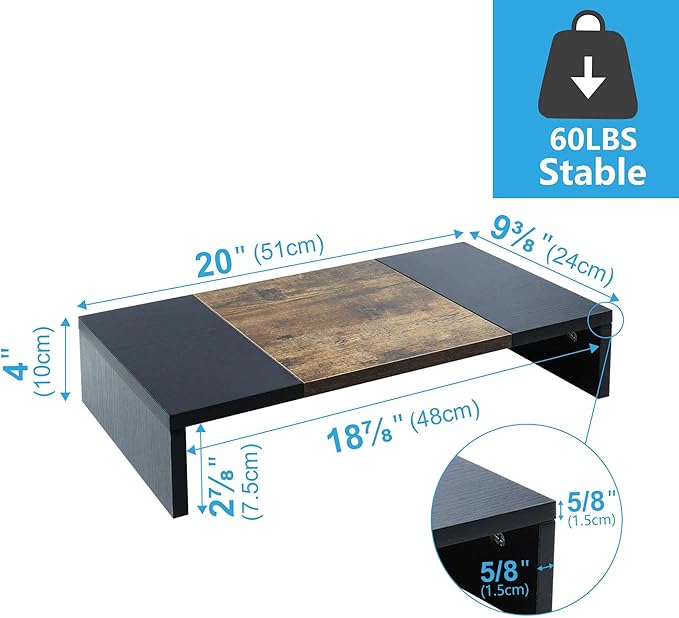 - 【Better Support】Stand can hold 60Ibs, there is a thick steel bar stabilizing support structure on the back avoid shaking. TEAMIX monitor riser made of high quality MDF wood board, strong and sturdy.