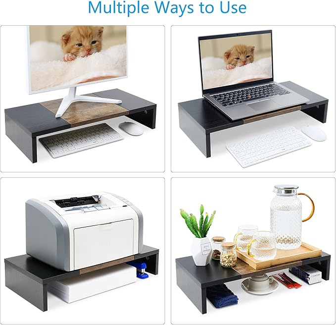 - 【Prefect Office Partner】This Multi-function stand can meet your 3 needs one time: ★Raise monitor/laptop/printer/game box ★Relieve fatigue ★Increase storage space.