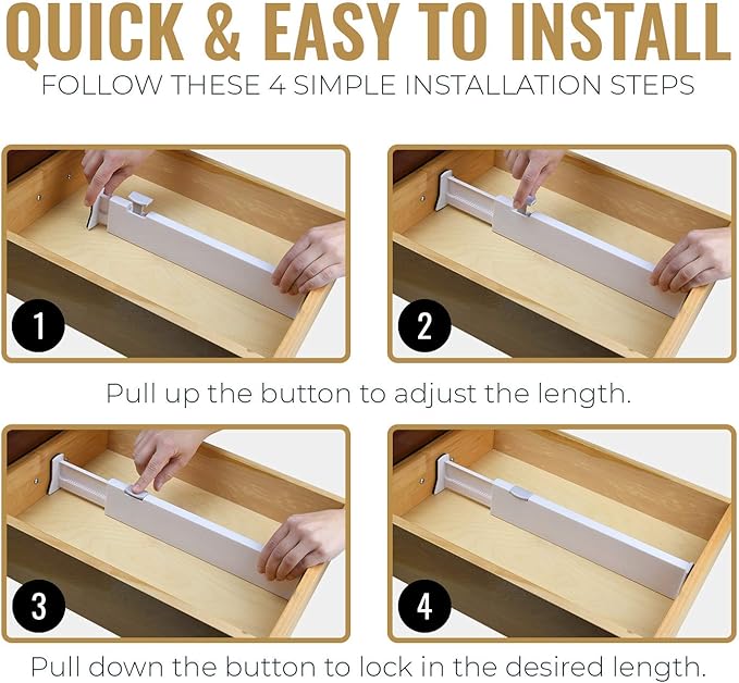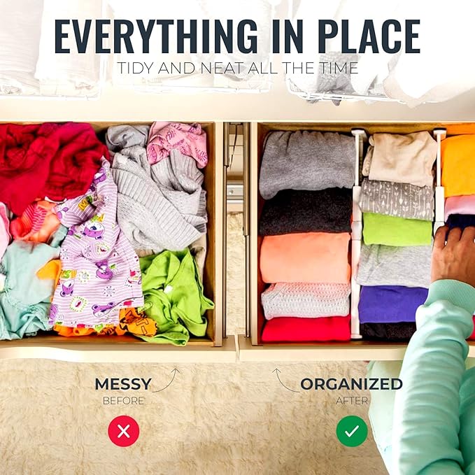 - Well-Designed Size: Includes 6 dividers, each 4 inches tall and expandable from 11 to 17 inches; customizable to fit most drawers and cabinets