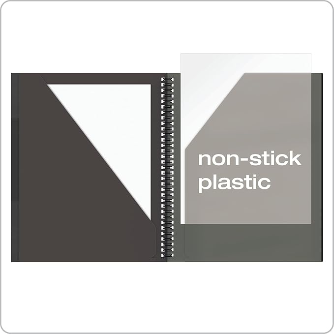 - This Oxford 10 pocket plastic folder has 8 pockets and 2 interior cover pockets for extra organization, easy lay-flat spiral binding and anti-tear edges to last the school year; 9" x 11", black