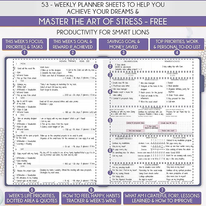 - SELF CARE PLANNER - This premium planner is undated and combines daily, weekly, and monthly planning features along with productivity, goal setting, business organization, to-do lists, notebook functionality, and gratitude journaling all in one. It includes goal-setting guidance that teaches you how to apply the law of attraction and vibration principles to become the best possible version of yourself on a mental, physical, and interpersonal level, thereby increasing productivity and happiness.