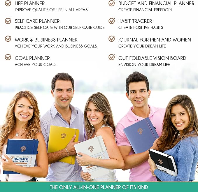 - SELF CARE PLANNER - This premium planner is undated and combines daily, weekly, and monthly planning features along with productivity, goal setting, business organization, to-do lists, notebook functionality, and gratitude journaling all in one. It includes goal-setting guidance that teaches you how to apply the law of attraction and vibration principles to become the best possible version of yourself on a mental, physical, and interpersonal level, thereby increasing productivity and happiness.
