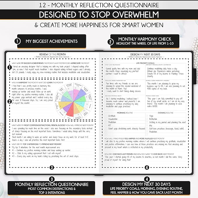- UNDATED PLANNER - Luxurious and high-quality, suited for women, and ideal for entrepreneurs, professionals, college students, and anybody with a burning desire to achieve their objectives. No-questions-asked money-back guarantee