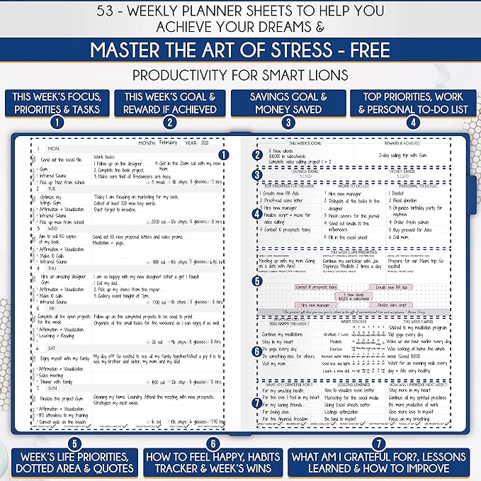 - Mindset & Gratitude Practice - Break free from overwhelm and build powerful routines with this practical habit journal, integrated into your life planner undated for men. Track progress toward your goals, growth and financial. Excellent choice for a focused daily planner for men or comprehensive men journal.