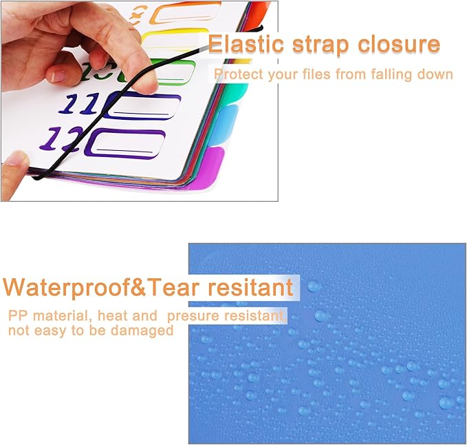 - ★Double Protection: The upper and lower parts of the file folder are secured by two elastic straps that prevent paper from falling out.