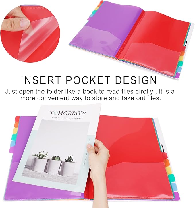 Rainbow Tab Expanding File Folder - 24 Pockets, Durable A4 Letter Size Organizer, Water-Resistant Plastic Dividers, Home/Office/School Document Holder (Blue)