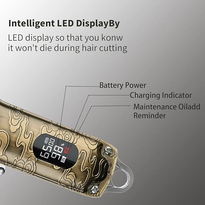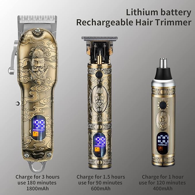 - INCORPORATED LCD SCREEN - Built-in LCD digital display, display remaining power, charging status and lubrication reminder indicator. The hair clipper can be used for 180 minutes after charging for 3 hours. The trimmer can be used for 120 minutes after 1 hours of built-in charging. 2 in 1 nose trimmer and mustache trimming,90 minutes after 1.5 hours of built-in charging.