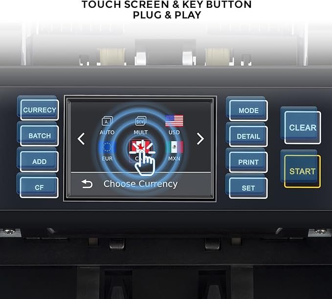- ✅Intelligent Cash processing Assistant: Support Value counting, Auto Recognition, Multi currency mixed counting for 20 currencies including USD,MXN, CAD,COP, CLP, DOP, PEN, VEF,ARS. Etc; If you need other currencies, we can help to upgrade