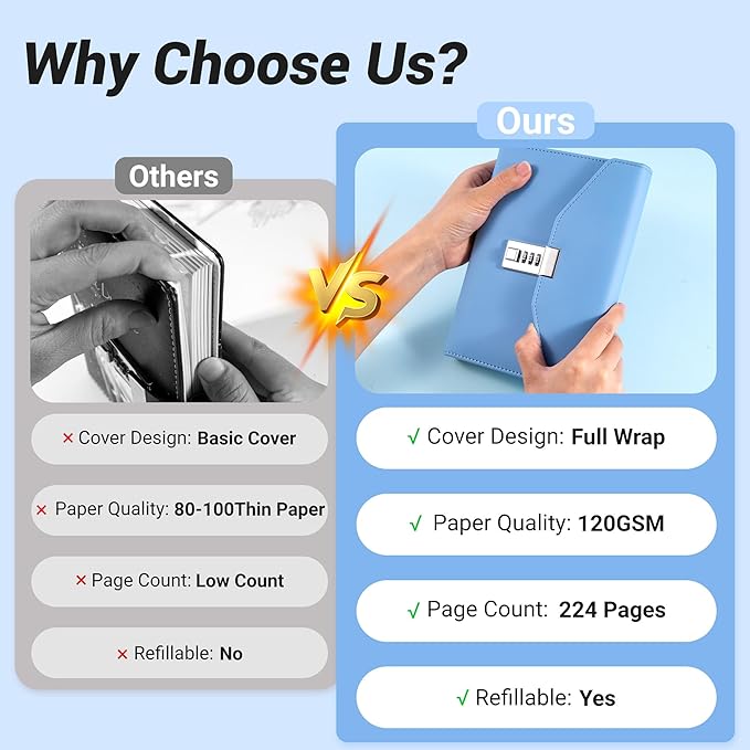 - USE AND SECURITY - Diary lock is easy to set, locked up tight. We have clear instructions to share you how to use the diary with lock.