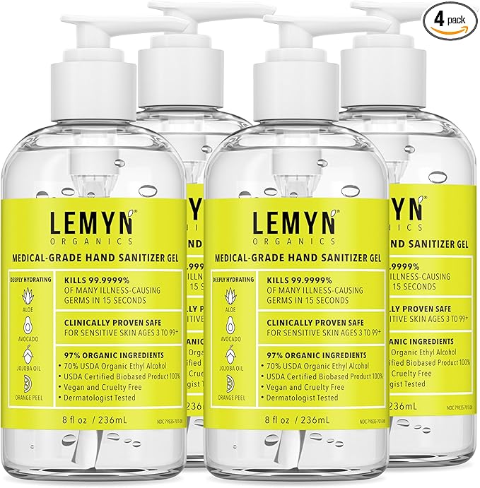 Medical Grade Hand Sanitizer Gel - 97% ORGANIC - 8 FL.OZ. with PUMP (PACK OF 4)