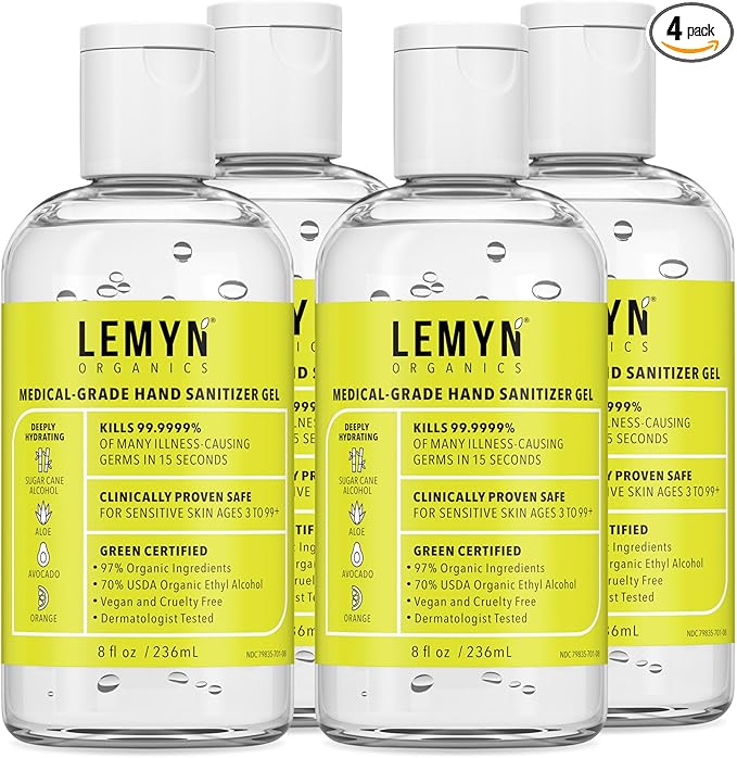 Medical Grade Hand Sanitizer Gel - 97% ORGANIC - 8 FL.OZ. Flip-Top (PACK OF 4)