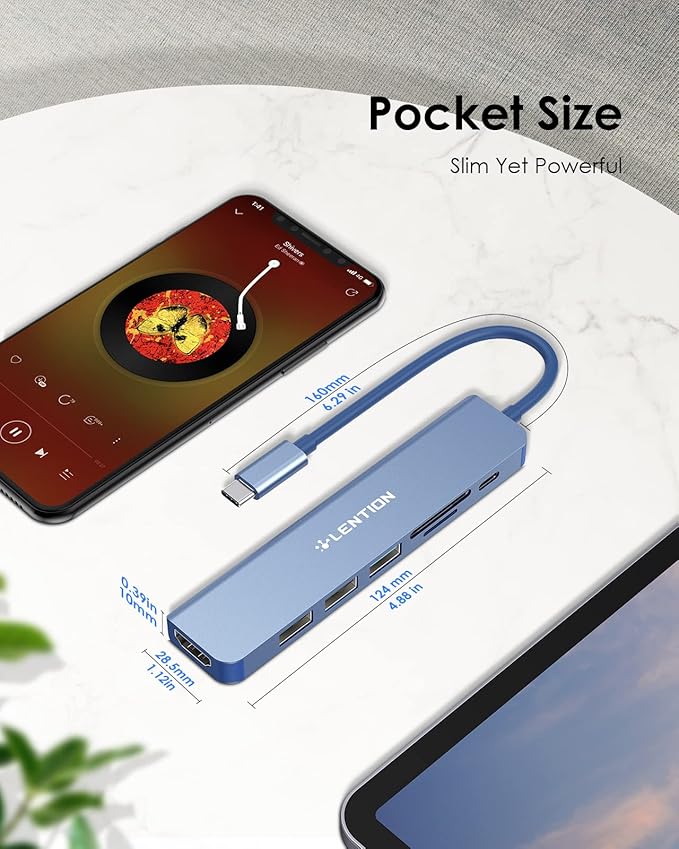 LENTION USB C Hub with 100W Charging, 4K HDMI, Dual Card Reader, USB 3.0 & 2.0 Compatible 2023-2016 MacBook Pro, New Mac Air/Surface, Chromebook, More, Stable Driver Adapter (CB-CE18,Blue)