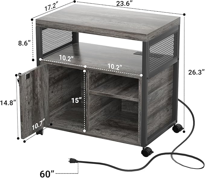 - 👍【Multifunctional】 This rolling printer stand featured with a lockable door, which allow convenient file access and add security that keep your business private. The two open shelves is great to store and display for binders, folders, books, furnishing articles or decor. You can also adjust the shelves height as your different needs.