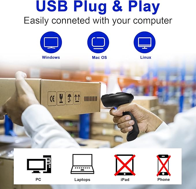 - ➤CCD Image Scanning Technology - NetumScan barcode reader is equiped with advanced CCD sensor, which can quick capture 1D codes from paper and screen, including CODE128, UPC/EAN Add on 2 or 5, that can read even deformed barcodes, i.e. smudged, damaged, fuzzy, reflective barcodes, etc. Reading faster and more accurate than laser scanner.
