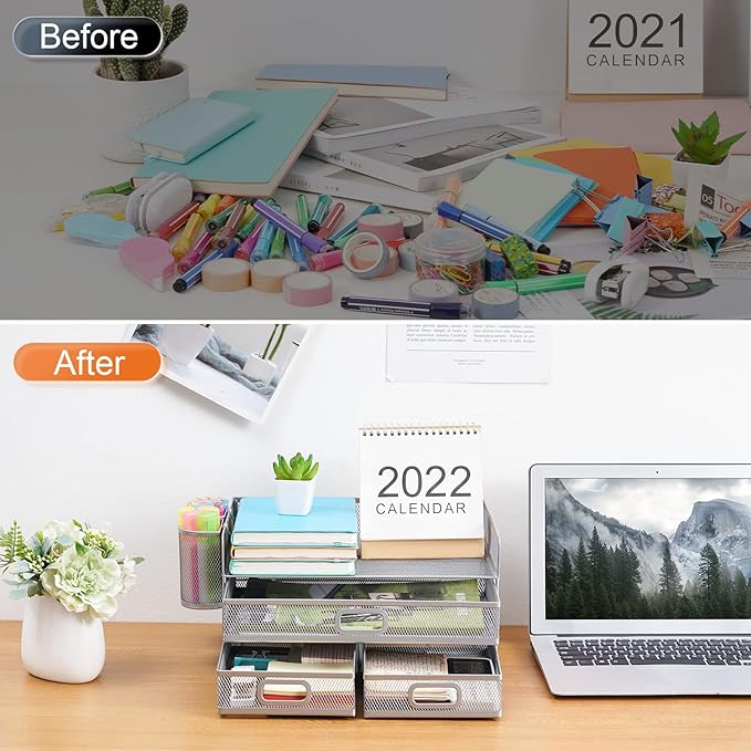 - 【Convenient Personal Storage】Compared with other mesh desktop organizer. The Multi-drawer design can help you store some important papers, whether it is personal letters or personal information can provide you with a certain privacy protection space.
