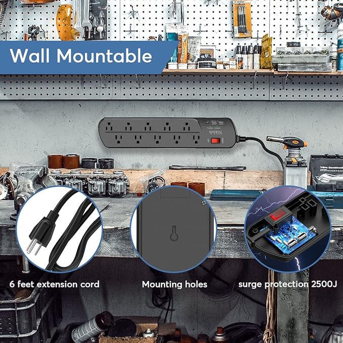 - Wall Mountable: The power strip can be mounted on the wall for convenient use.