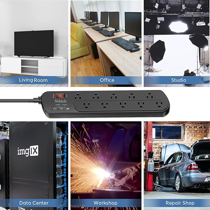 - Multiple Outlets: 10 wide outlets provide power to multiple devices at once.