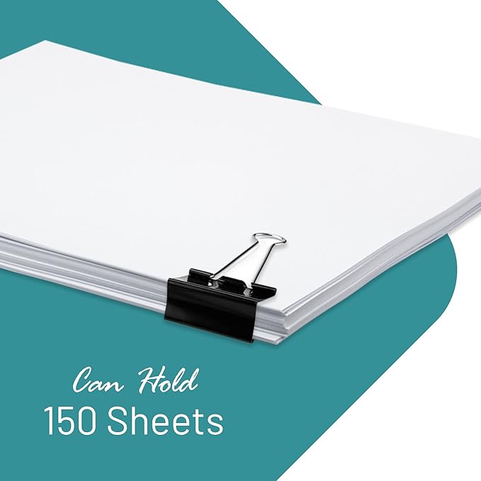 - Includes 48 medium binder clips. 1.25” – holds 150 sheets of paper.