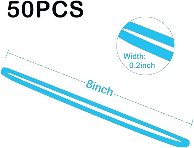 AMUU Rubber Bands 8inch 50 Pack Big Large Rubber Band for Trash Cans Elastic Rubber Bands for Office Supplies File Folders Box Books gifts Notebook Blue