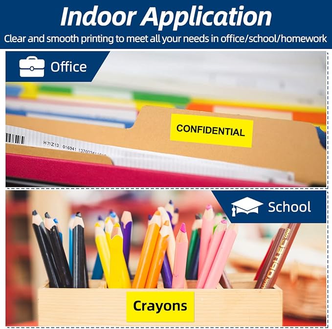 - Wide Application: Labelife compatible Brother Ptouch 3/4 inch TZe label tape is good addition for business, home, office, retail shop, warehouse and more. TZe-641 label tape is perfect for labeling kitchen, shelving, cabinets, files, folders and accessories. Great for creating name badges and luggage labels, etc