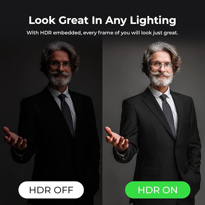 - 【HDR Auto Light Correction】Our webcam for PC ensures that you always look your best, thanks to HDR auto light correction. This feature provides perfect brightness and contrast in any lighting condition, so you always look sharp and clear on web camera.