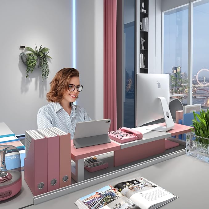 - 【Multifunctional Monitor Riser 】The monitor stand has powerful storage function of keeping the table clean.It can be used as a monitor stand riser, printer stand, laptop riser, or a TV stand, makeup, animals. Extra storage space underneath organize your office supplies.