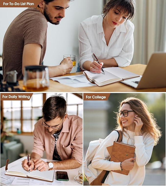 - 【VALUE OF MONEY HARDCOVER JOURNAL SET】: Classic brown ruled notebook, journals are elegant, quality crafted books available at a surprisingly competive price and quality. A huge choice for everyday use, provides plenty of space for notes, lists, musings, and more. And each notebook will give away a luxury pen, this is one of our best journal pens gifts.