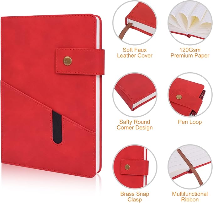 - 【Premium Thick Paper】- 5.9 X 8.4 inch journal notebook with 200 pages 100 gsm lined paper, thicker 30% than normal, this red notebook is designed to avoid feathering and the paper is ink-proof, suit for most pens, but the wettest pen inks. Archival-quality pages made from acid-free paper-resists damage from light and air, the cream paper is easy on eyes.Let your creation more freedom on the wide ruled journal to write in.