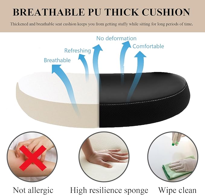 - 【Ergonomic Office Chair for Comfort & Support】Designed with a curved backrest for full spine support, this ergonomic desk chair helps reduce back and waist pressure. The thick, high-density cushion and soft PU leather offer long-lasting comfort and breathability. Lean back and enjoy the rocking function for better relaxation during breaks.