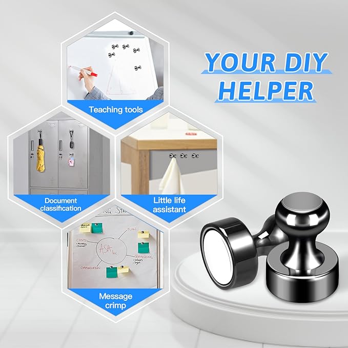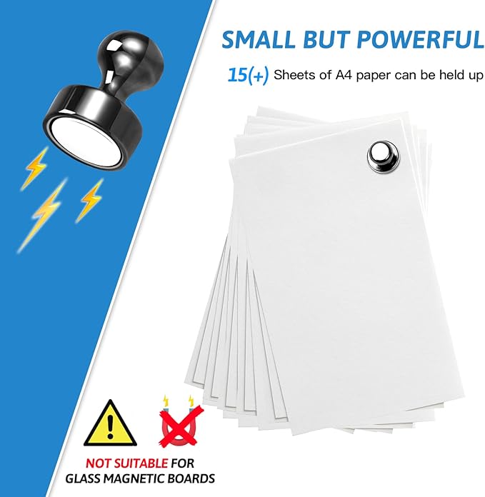 - 【Best Organiser】With these magnetic push pins, everything will become tidy and orderly. Perfect for holding paper, posters, cards, photos, kids' artwork, note lists, or school paperwork on whiteboards, fridges, bulletin boards, magnetic maps, calendars, lockers, file cabinets, and other magnetic surfaces in the home, office, and school.