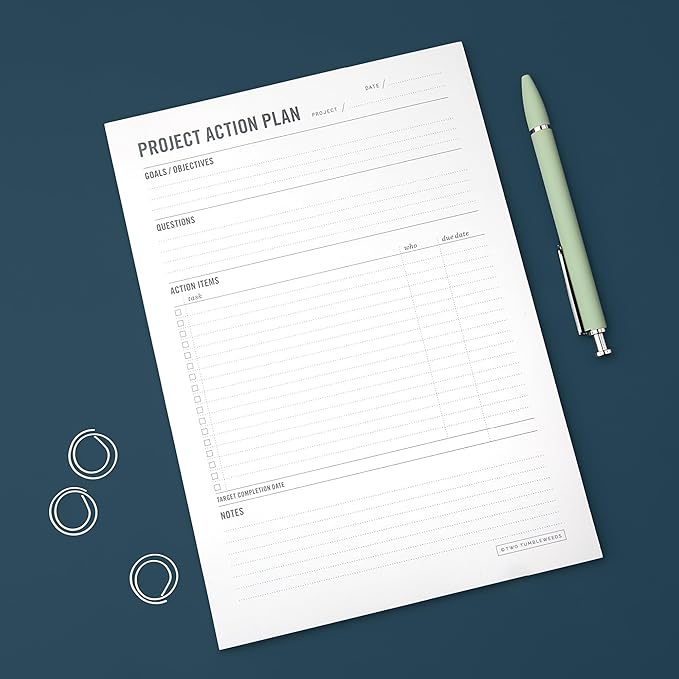 Two Tumbleweeds - Project Planner Notepad - 7 x 10” Planning Pad for Project Management with Checklist, Action Items, Notes - Task Planner - To Do List Organizer For Work & School - 50 Sheets