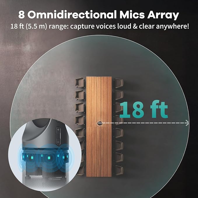 - [Adapt to Any Meeting Space] - Builte-in 8*omni-directional mics and customized Hi-Fi speaker, this meeting camera captures the speaker's voice accurately and prevents background noise from disturbing meetings