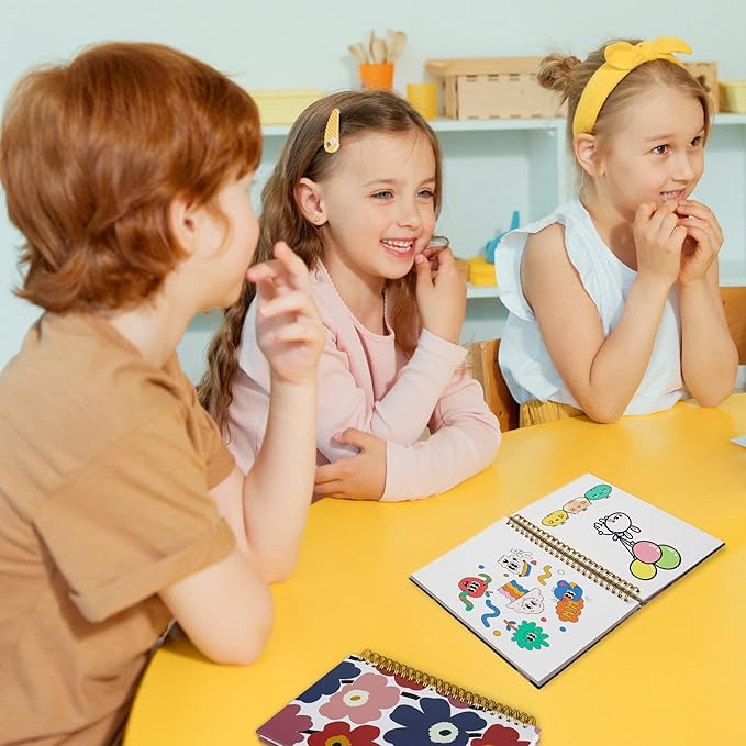 Blank Spiral Notebook Bulk, A5 Flower Unlined Journals, 100GSM Thick Paper Travel Journal Set, Hard Cover, Plain Wirebound Draw Sketchbook Planner, 75 Sheets per Book, 5.7x8.3 inch, 3 Pack