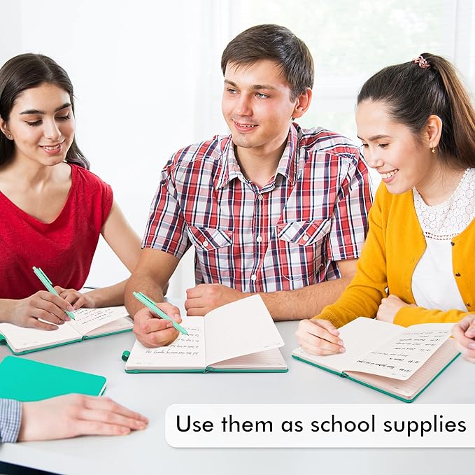 - Feela 12 Pack Classic Ruled Notebooks contains 12 aqua ruled sturdy cover notebooks and 12 Black Retractable Pens. Each of the notebooks measures 8.3” x 5.1”, which is perfect to carry and easily held by young girls and boys. These black cute pens are customized to be placed in the pen holder, which is pretty convenient.