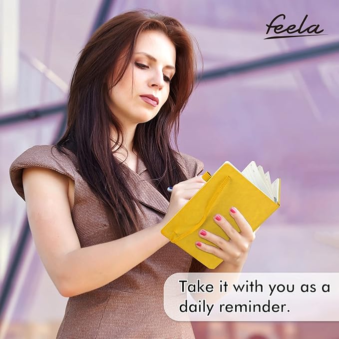 feela 18 Pack Journal Notebook for Work, Business Notebook Bulk Hardcover Lined Writing Journal with Pen Holder for Men Women Note Taking, with 18 Black Pens, 120 GSM, 5.1”x8.3”, A5, Yellow