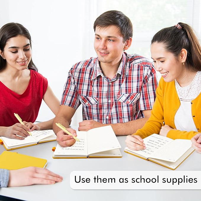 - Feela 18 Pack Classic Ruled Notebooks contains 18 yellow ruled sturdy cover notebooks and 18 Black Retractable Pens. Each of the notebooks measures 8.3” x 5.1”, which is perfect to carry and easily held by young girls and boys. These black cute pens are customized to be placed in the pen holder, which is pretty convenient.