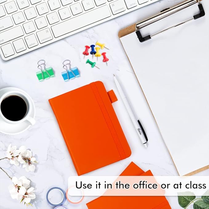feela 6 Pack Pocket Mini Notebooks Bulk, Small Cute Memo Notepads Hardcover College Ruled Lined Journals with Pen Holder for School Business Work, with 6 Black Pens, 3.5”x 5.5”, A6, Orange