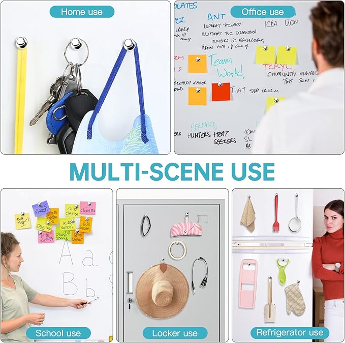 - 【WIDEYL APPLICABLE】Silver fridge magnets can play a great role in the home, office, school, classroom, and kitchen. Office magnets are suitable for whiteboards, refrigerators, lockers, doors, workbenches, or cart-style toolboxes. When your kid's artwork, cards, pictures, papers, takeout menus, lists, reminders, posters, letters, keychains, miscellaneous tools, and small objects are nowhere to be found, our magnets fridge may be just what you need!