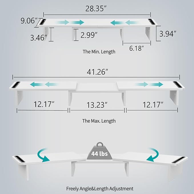 - Flexibility of extension and move: With two sides resting on the middle riser with a pivot point, this desk stand riser makes the whole unit easy to extend and angle.