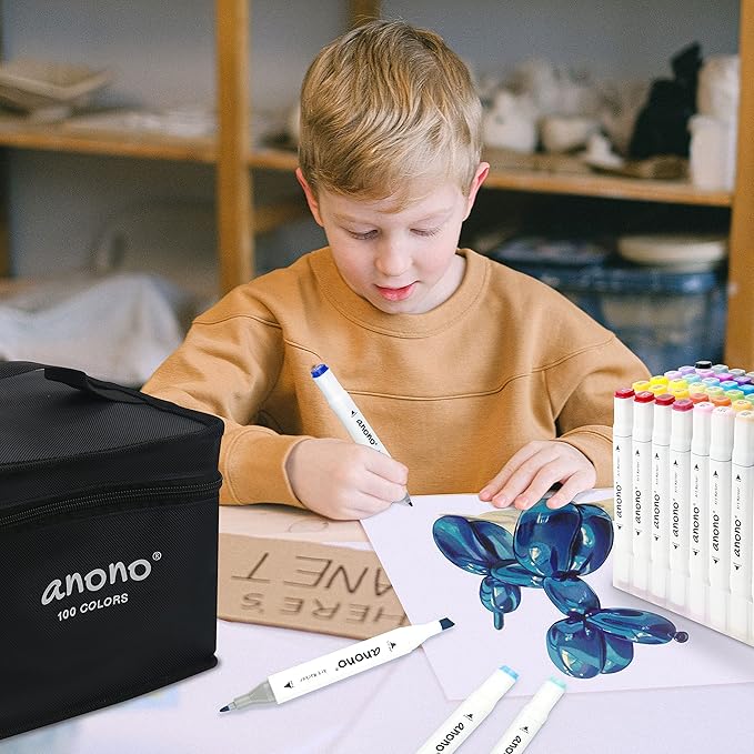- Easy to Organize: anono alcohol marker set features a transparent base that keeps each coloring marker neatly in its slot—no mess after use. It also includes a black carrying case for easy storage and portability, ideal for use at home or on the go.