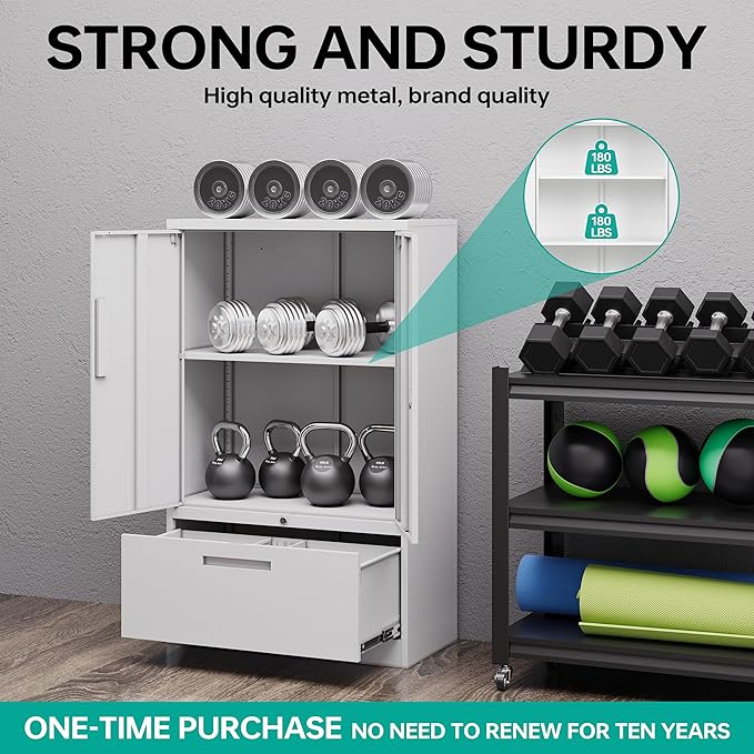 - 【Lockable Storage Cabinets】 Our file cabinet with lock & 1 adjustable shelf for a great fit & convenience. 1 large metal drawers for letter, A4, legal size hanging folders, high end unlocks to protect valuables including keys. Whatever your storage needs, you can create a unique storage space that suits them