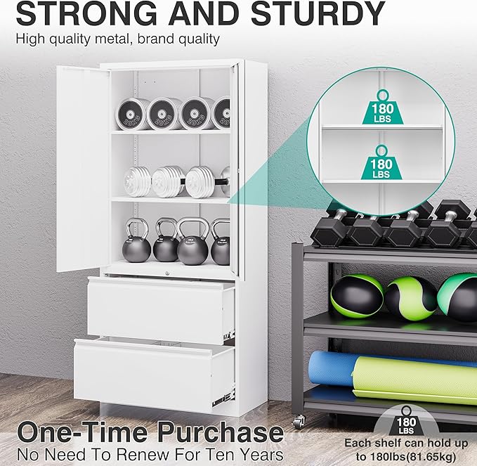 - 【Lockable Storage Cabinets】Our file cabinet come with locks and 2 adjustable shelf for a great fit and convenience. high end unlocks to protect valuables including keys. Whatever your storage needs, you can create a unique storage space that suits them