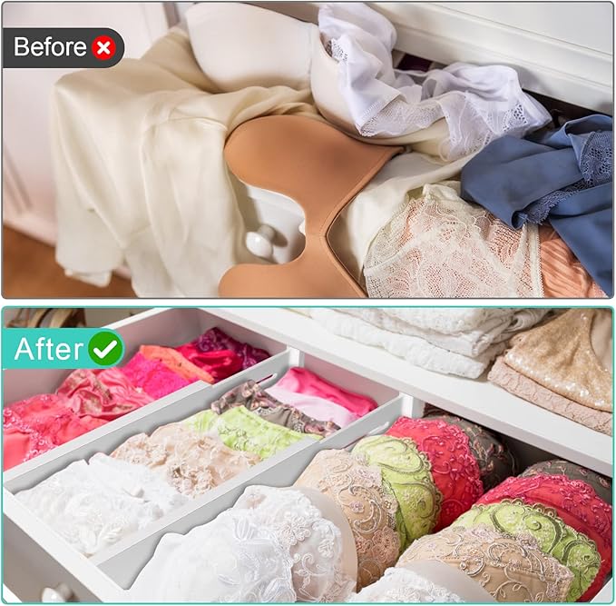 - Adjustable Drawer Dividers: Adjustable drawer dividers range from 11.8-17 inches in length; fits easily in most drawers to keep your belongings organized and easy to access