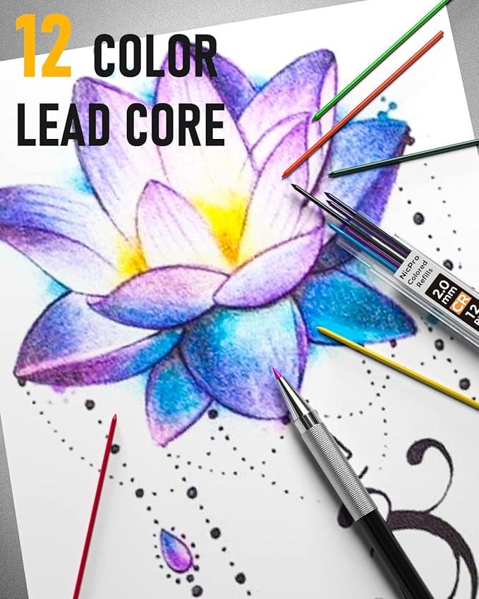 - 【2 PCS 2mm Lead Holder】: Metal Threaded Anti-skidding pen tube with sharpener in the cap of 2.0 mm mechanical pencil, Extra 2pcs lead sharpener are also provided for the 2.0 lead to keep the fine point as they dull. And an extra colored lead refill for your wonderful painting.