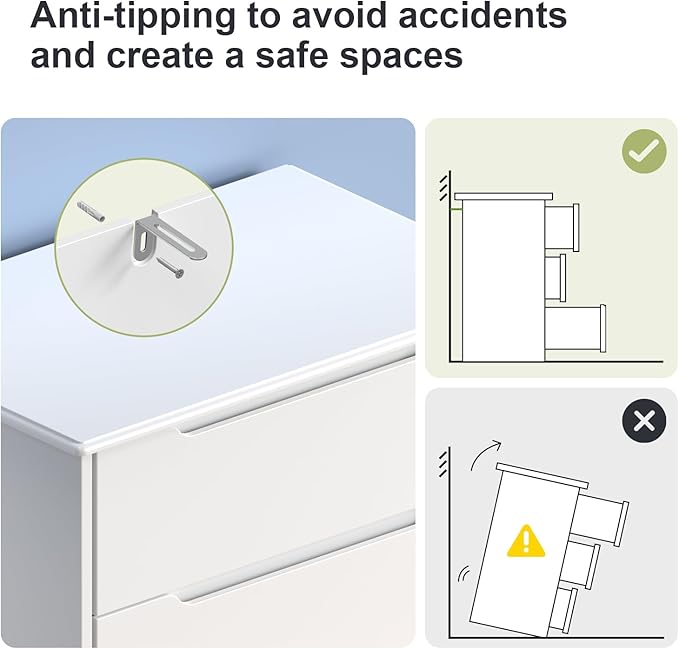 Gizoon 3 Drawers Chest, Bedroom Drawer Dresser with Large Storage Capacity, Embedded Handle, and Sturdy Anti-Tripping Device, Modern Design Cabinet for Hallway, Office, Living Room (White)