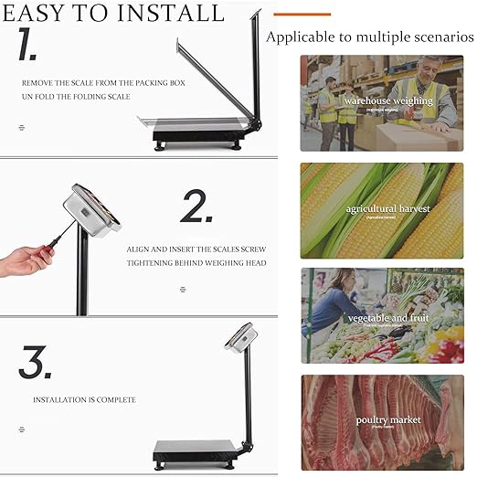 - 🍕【Top Quality】-- The weighing platform measures 15.7''Lx19.7''W, sturdy and wide platform accommodates various items. 4 Adjustable skid proof feet for keeping the platform balance. Foldable design makes it easy to carry and store, saving space.