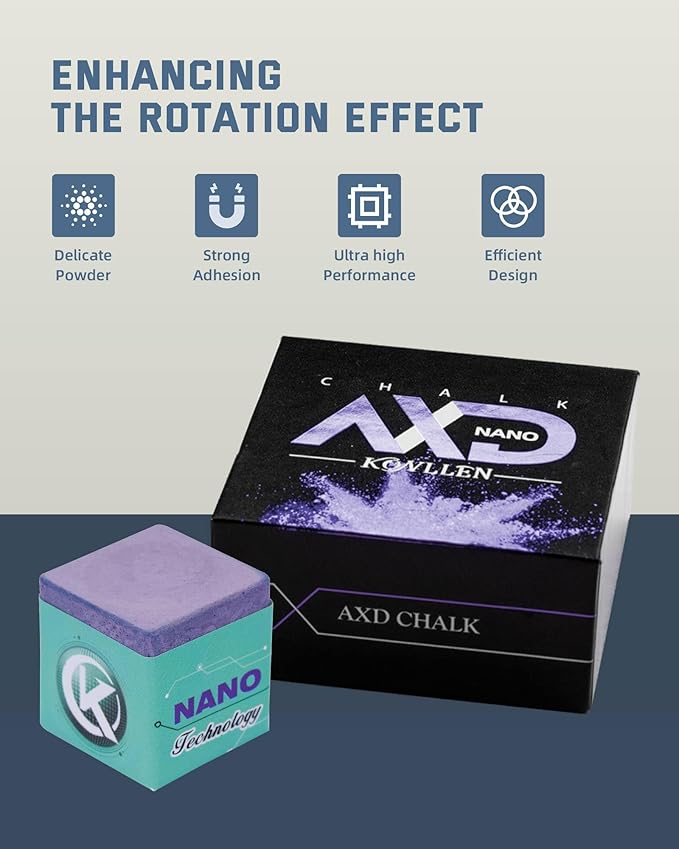 - Nano Technology: KONLLEN pool hand chalk utilizes revolutionary nano-materials, ensuring an ultra-fine texture with superior adhesion. It resists flaking and spreading, making it more environmentally friendly and healthier. With KONLLEN, you can achieve the best feel and performance in any condition.