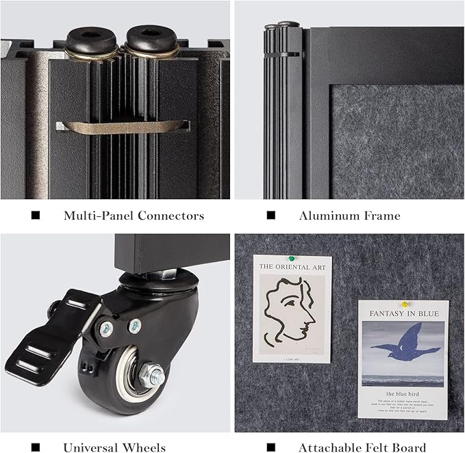 - Portability: Our partition screen is equipped with high-quality universal wheels, you can easily move the partition wall to anywhere. It is also equipped with a brake function, so it can stand firmly where you need it