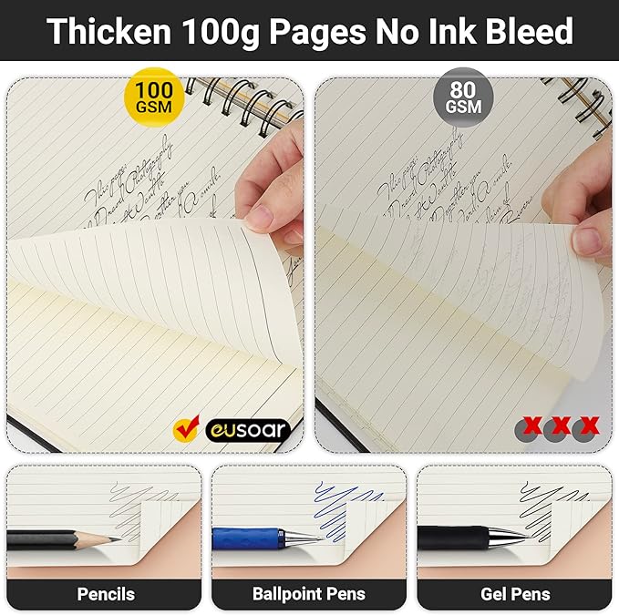 - 【Spiral Design】The notebook is bounded with sturdy double spiral wire, which can not only make notebook lays flat when open, but also facilitate you to tear pages without separate or scattering.