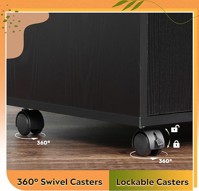 - Easy to Move & Assemble: Comes with 5 swivel wheels, including 2 lockable casters that can be stabilized or moved freely with the braking feature. With detailed instructions and an installation video, you can easily assemble this mobile file cabinet using the tools provided. If you have any questions about it, our professional service team is ready to help.